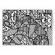 "Patterns Run Amok, 4" is the fourth in a series of black and white whimsical designs featuring a hand-drawn outline that's then filled in with repeating patterns. Circles, rings, squares, bulls-eye, targets, flowers and more are interspersed over the surface in an unpredictable array.