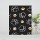 This cute little paw print is great for pet lovers everywhere. Features a black background and white and gold paw prints in a scattered pattern.