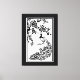 Black white peacock and cherry blossoms custom wrapped canvas print, featuring a black silhouette of a peacock bird and a cherry branch -sakura tree- with lovely flowers on white background. A B&W design with an oriental Asian flair.