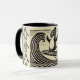 Black White penguin catches a wave Mug