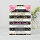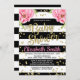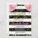 Elegant black & white baby shower invitation with pink peony's and gold glitter accents