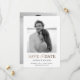 Announce your special day with this elegant save the date card, featuring a classic black and white photo framed by a crisp white background. The "Save the Date" text is highlighted in luxurious faux metallic gold, adding a touch of sophistication and elegance to the design. Perfect for couples seeking a timeless and modern aesthetic, this card is easily customizable with your photo and wedding details, making it a memorable keepsake for your guests.