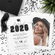 The back of the invitation features space for a photo of the graduate with a simple white border, making it a personal and memorable keepsake for friends and family. This design uses an all-white background with black and gray accents, keeping the look polished, modern, and easily customizable to fit any school colors or personal style.