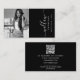 A modern black and white photography themed business card design incorporating your details and your QR Code. This elegant business card is ideal for all types of professions. A simple and professional way to introduce your business. Personalize your details to create your own unique business card. A perfect business card for anyone.