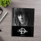 A chic black background. Personalize and add your own photo, a name, monogram letter and a year. The name is written in white with a large modern hand lettered style script. The monogram letter in gray. Perfect for school, work or organizing your personal/family life.