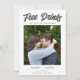 Funny wedding save the date cards in a black and white text design that reads "Free drinks (and we're getting married)". Your guests won't be able to resist smiling when they receive this one-of-a-kind save the date card in the mail. It's the ideal way to let them know that your wedding is all about joy, great company, and lots of fun.