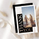 Announce your special day with our elegant Black White Photo Wedding Thank You Rose Foil card, featuring a striking photo design adorned with luxurious gold foil accents. This sophisticated card showcases two of your favourite photos, capturing the essence of your love story. Perfect for setting a romantic tone, it ensures your guests mark their calendars in anticipation. Make a lasting impression with this exquisite blend of modern style and timeless elegance.