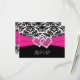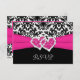 Black, White, Pink Damask & Hearts Reply Card