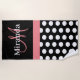 Black White Pink Monogram Script Polka Dot Beach Towel