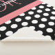 Black White Pink Monogram Script Polka Dot Sherpa Blanket