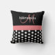 Black White Pink Monogram Script Polka Dots Throw Pillow