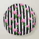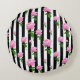 Black White Pink Rose Flower Stripes Lines Round Pillow