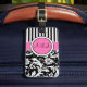 This monogrammed pink, black, and white stripes with floral damask pattern luggage tag is fully customizable and would give your luggage a chic and modern tag that would make it easy to spot at the airport. If you need help, or want something changed, email your request to niteowlstudio@gmail.com.