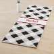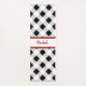 Personalize your yoga mat, with your name (or any other text). Modern look with a minimalist black & white plaid. Custom text is crimson red.