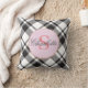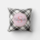 Black & White Plaid Pink Personalise Monogram Name Throw Pillow