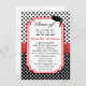 Black White Polka Dot Mortar Red Ribbon Graduation Invitation