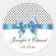 Black White Polka Dots Blue Ribbon Save The Date Classic Round Sticker
