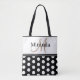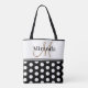 Black White Polka Dots Monogram Script Tote Bag