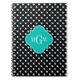 Black White Polka Dots Teal Quatrefoil 3 Monogram Notebook