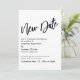 This suite's distinction is due to the bold, casual handwritten script font used for accent phrases. If you're in the position of needing to inform your wedding guests that you've had to change your big date, here is a bold option. In this piece, the hand-lettered script font was used to create a simple graphic depicting the word "New Date". Use the template fields to add your personal details and make this modern design your own. The white background can be changed to any colour you prefer. Please reach out with any special requests or for customizing assistance. // 105 //