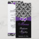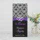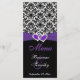 This modern and chic black and white damask wedding menu card has a PRINTED purple ribbon with a pair of FAUX glitter and PRINTED diamond jewel joined hearts on it that matches the wedding invitation shown below. If you require any help, or need any other matching items, please email your request to niteowlstudio@gmail.com.