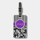 This monogrammed purple, black, and white stripes with floral damask pattern luggage tag is fully customizable and would give your luggage a chic and modern tag that would make it easy to spot at the airport. If you need help, or want something changed, email your request to niteowlstudio@gmail.com.
