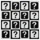Chequered Black and White question Mark surface pattern design fabric.