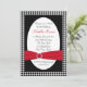 This chic and modern red, black, and white houndstooth pattern 30th birthday party invitation has a red PRINTED ON ribbon and crystal brooch on it. All text and the paper type is fully customizable. If you require any matching products, please email niteowlstudio@gmail.com with your request.