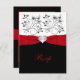 This modern and romantic black, white, and silver grey floral wedding r.s.v.p. card has a red PRINTED ribbon and a PRINTED silver heart buckle with the word "Love" on it. It would be perfect for a romantic Valentine's Day wedding, engagement party, or anniversary. Some of the papers will alter the colour of the design, so use caution if you choose the felt paper, as it may yellow the look more than you want. I would NOT use the gold, silver, or champagne metallic papers, as they will darken the design without adding any extra sparkle to it than what you would get with the metallic ice paper. ALSO, if you re-size the invitation, or if you change fonts, or the size of the font, some of the design and/or text may get cut-off. Everything will print as you see it on your monitor. I will not see your card, and Zazzle will NOT correct anything (typos, mis-alignment etc.). The text and paper is all customizable. If you need help with this card, or if you want it in a smaller size, please email me BEFORE you place your order. If you require any other matching items, please email your request to niteowlstudio@gmail.com.