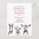 Your little one is turning one! Invite your special guests with this adorable invitation postcard featuring hand drawn farm animals (a horse, a pig, a cow and a chick) in black and white. Baby's name, "first birthday" and the date are in red hand lettered script typography, and personalized in a chic modern black sans serif. Copyright Elegant Invites, all rights reserved.