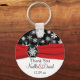 This black and white snowflakes wedding favour thank you key chain with FAUX red ribbon and snowflake medallion matches the wedding invitation shown below. All the text is customizable, and you can change the size and shape. If you require any other matching items in this design, please email your request to niteowlstudio@gmail.com.