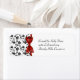 Beautiful wedding or engagement design in a black & white floral with a red floral satin like bow and scalloped edging.