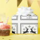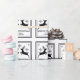 Destei's festive silhouette design of two reindeer together with some snowflakes as a pattern. There are also two personalizable text areas and the design is framed by a border. The colour scheme is black and white.