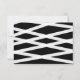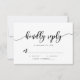 Stylish RSVP card featuring the words "kindly reply" in a relax cursive script in black against a white background. Card has a black back side featuring overlapping white lines.