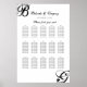 This design features the bride's and groom's initials as the main focus of the design. Personalized script initials using script font typography creates a perfect fusion of modern and elegance. A simple custom minimalist wedding seating chart design with modern black and white monogram. Matching wedding invitations and stationery items are also available. To re-position the initials please click "Click to customize further" link when personalizing details.
