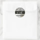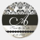 BLACK & WHITE SILK DAMASK CLOTH MONOGRAM CLASSIC ROUND STICKER