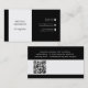 Simple modern black and white business card with lots of information and a QR code. For IT professionals, accountants, system administrators, engineers etc. Minimalist and informative.