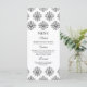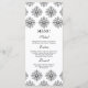 This stylish chic wedding food menu has an elegant white background with a black snowflakes damask design on the top and bottom. In the middle, you can easily customize this with your menu.