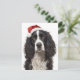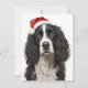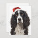 Black & White Spaniel Santa Hat Xmas Art Holiday Card