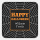 Black White spiderweb Halloween pattern Your name Square Sticker