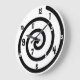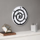 Modern clock done in black and white, with a big black spiral design against a white background. Number are done in black and white. Customize to add text to this fun wall clock.