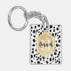 Motif élégant Dalmatien taches avec un faux étiquette de feuille d'or avec nom personnalisable et modèles monogrammes. Un joli porte - clé monogrammé avec des taches noires et blanches motif et des éléments dorés. Pour modifier les couleurs et les styles de police, cliquez sur le bouton "personnaliser", puis cliquez sur le bouton "customiser plus loin".
