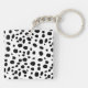 Stylish Dalmatian spots pattern with a faux gold foil label featuring customizable name and monogram templates. A cute monogrammed keychain with black and white spots pattern and golden elements. To change the font colours and font styles click the "personalize" button and then click the "customize further" button.