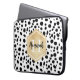 Stylish Dalmatian spots pattern with a faux gold foil label featuring customizable name and monogram templates. A cute monogrammed laptop sleeve with black and white spots pattern and golden elements. To change the font colours and font styles click the "personalize" button and then click the "customize further" button.