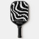Black and white stars on cool zebra wavy lines Personalized pickleball Paddle. features stars and lines design with name in a modern style typography .