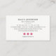 Bright and modern in shades of rich black, crisp white and fuchsia pink, our double sided business cards have a loyalty punch on one side and your full contact information, including social media, on the reverse. Includes five pink lip print kiss illustrations with a sixth in faux gold for your customer's discounted service or free item. Personalize with your desired loyalty terms beneath.