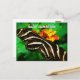 “Hello Sunshine.” A close-up photo of a delicate, black and white striped butterfly on an orange and yellow blossom. Feel the sunshine of a warm, sunny day whenever you send this stunning, colorful photo postcard. Makes a great gift for someone special!
