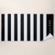 Preppy chic personalized beach towel features classic wide black and white stripes, with your name or choice of personalization along the bottom in bold white lettering.