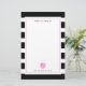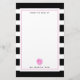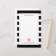 Stationery for teachers featuring an illustration of a pink watercolor inspired apple at bottom. Border is black and white stripe design. Personalize the name.