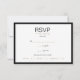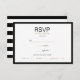 Stylish striped wedding RSVP response cards in black & white with contrasting text in gold.